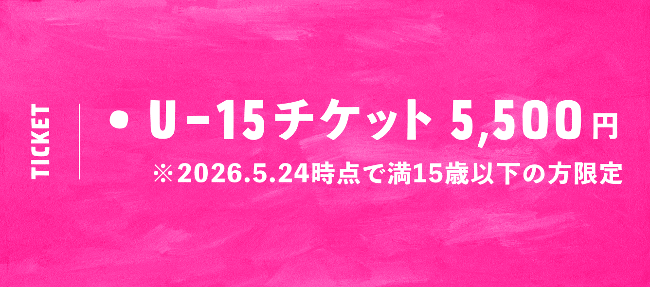 チケット:12,000円 / U-15チケット 5,500円(共に全自由・整理番号付き)